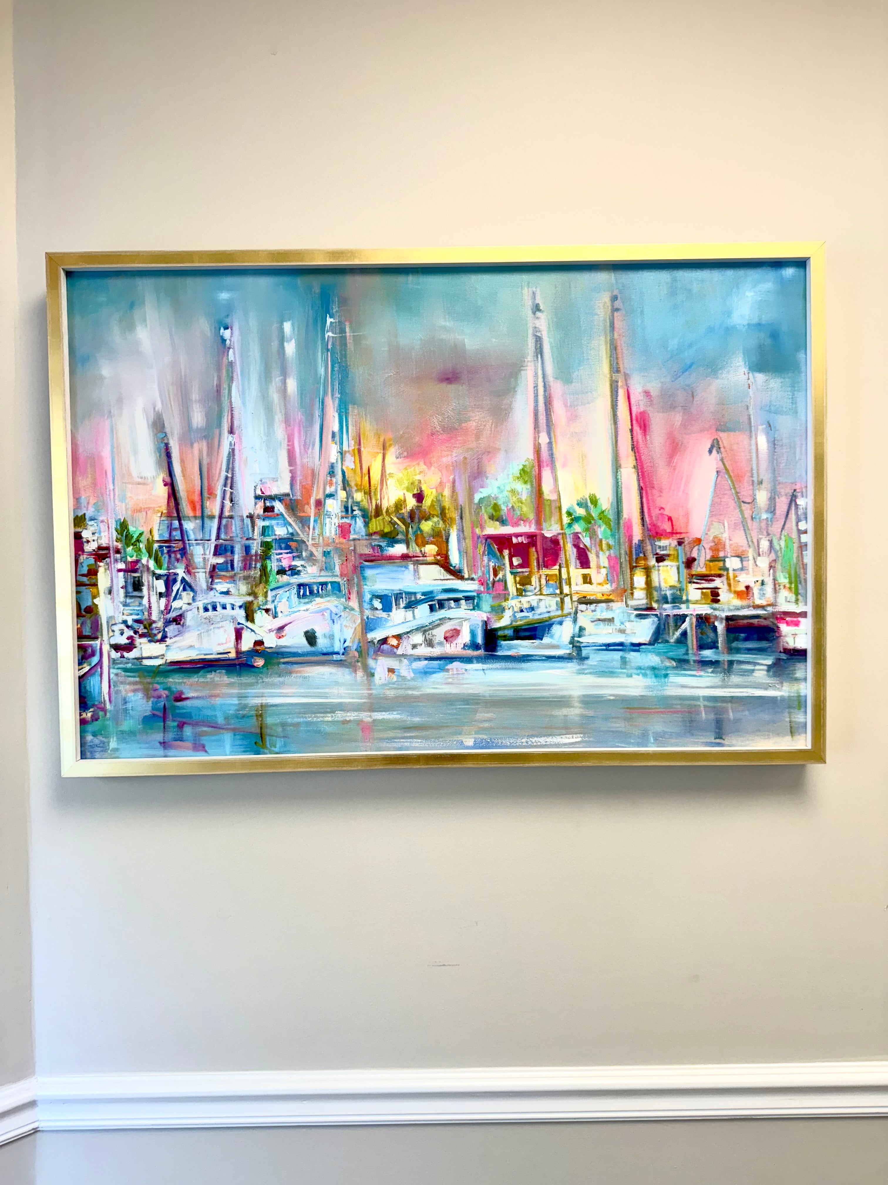 Oil on wood panel- custom frame cap gold w/white washed sides